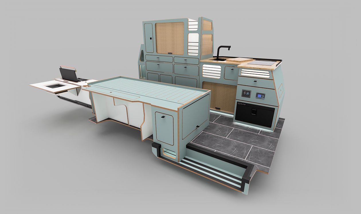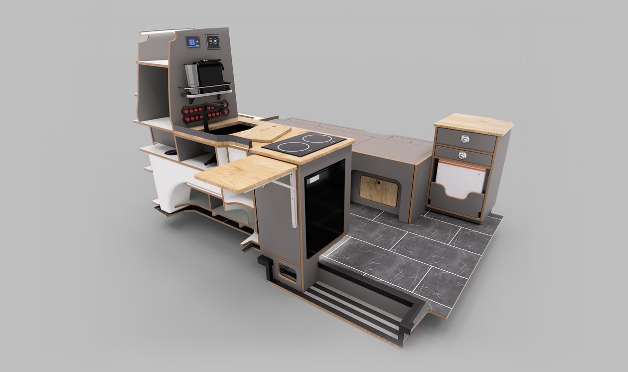 Unsere Konzepte vereinen modernes Design, robuste Materialien und eine durchdachte Raumaufteilung. Jedes Konzept basiert auf CAD-Konstruktionen und wird individuell an verschiedene Fahrzeugmodelle angepasst.
